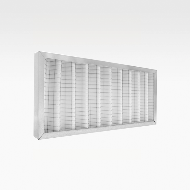 Il filtro è composto da un telaio esterno in acciaio zincato dove ha sede il setto filtrante costituito da un materassino ondulato sintetico con capacità filtrante ePM10 50% (ex M5 - EN 779) che garantisce il filtraggio di particolato con dimensioni maggiori a 10 μm.