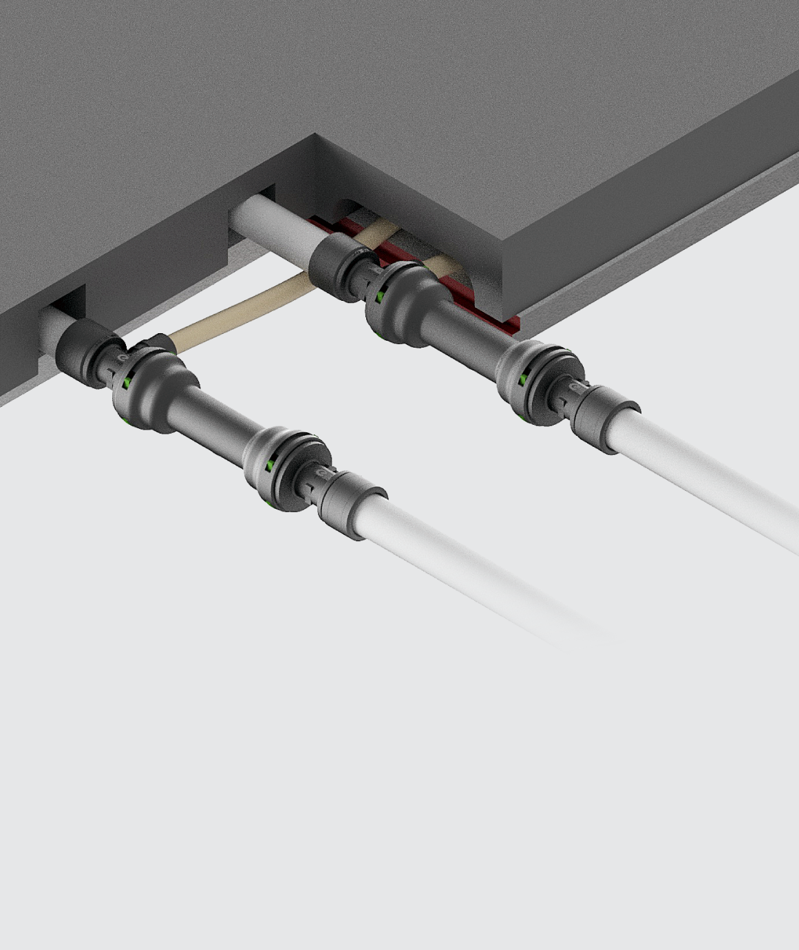 Thanks to the diameter and thickness of the pipe used (MidiX 10x1.3 mm), the fact the piping is integrated in the plasterboard, which increases the yield by 8% compared to the pipe inserted in the insulation, and the special serpentine geometry, the Leonardo ceiling system with guarantees high yield a very low system thermal inertia.