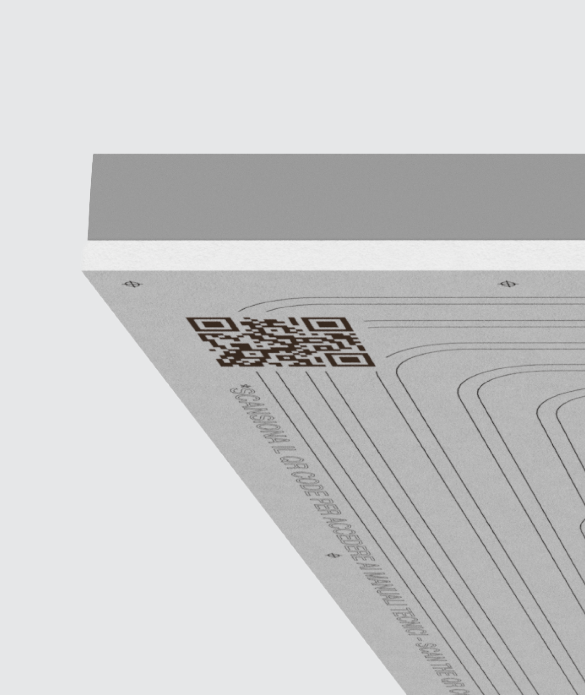 The Leonardo Click&Safe 3.0 Plus system consists of a 10 mm plasterboard panel with Activ'Air® technology coupled with 50 mm of sintered polystyrene foam with graphite for a total thickness of 60 mm. The plasterboard panel is complete with 5-layer polyethylene piping with EVOH oxygen barrier. The MidiX Plus piping in high-temperature resistant polyethylene, with a center-to-center distance of 3 cm, is arranged in a serpentine pattern.It is ideal for both winter heating and summer cooling.