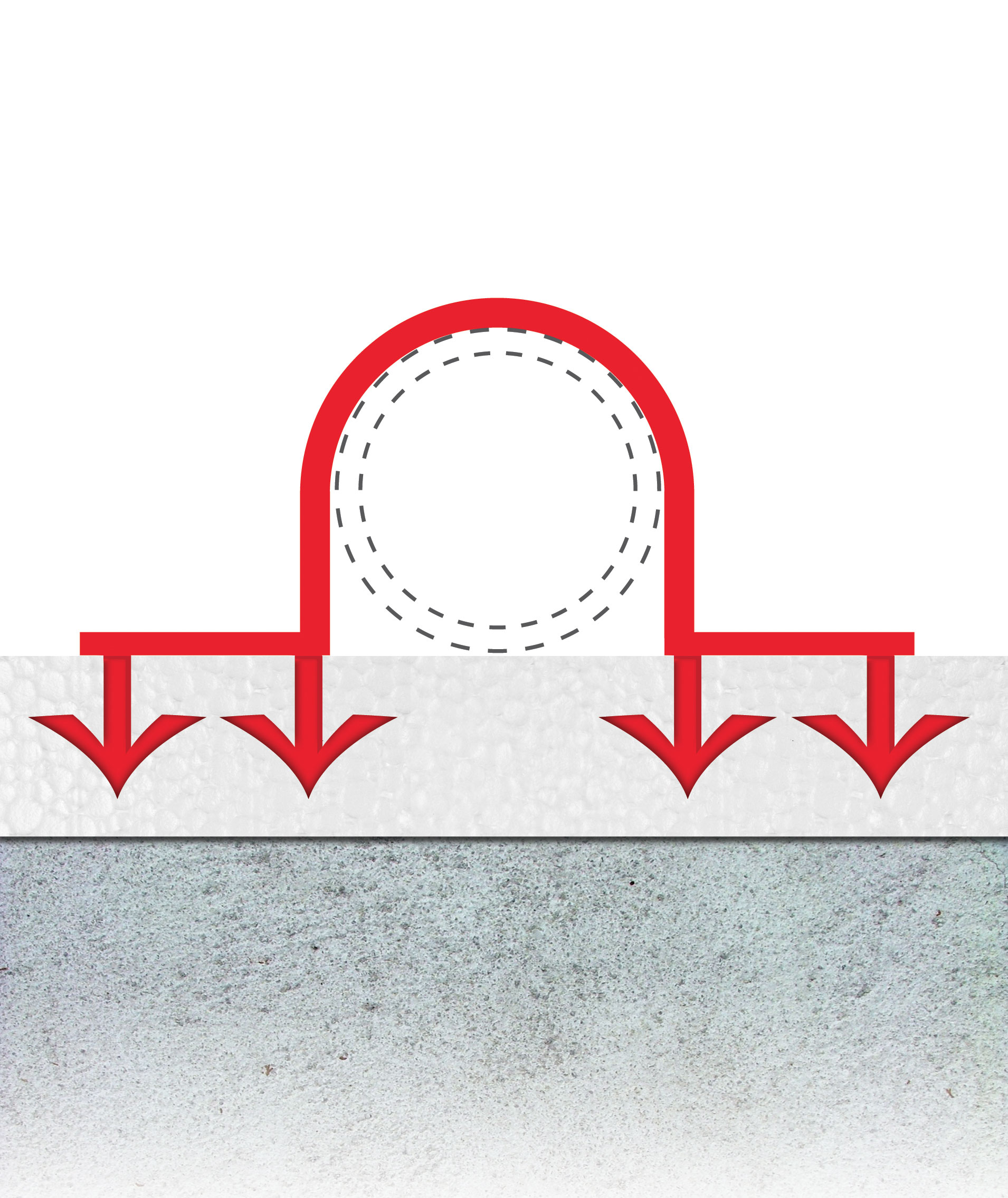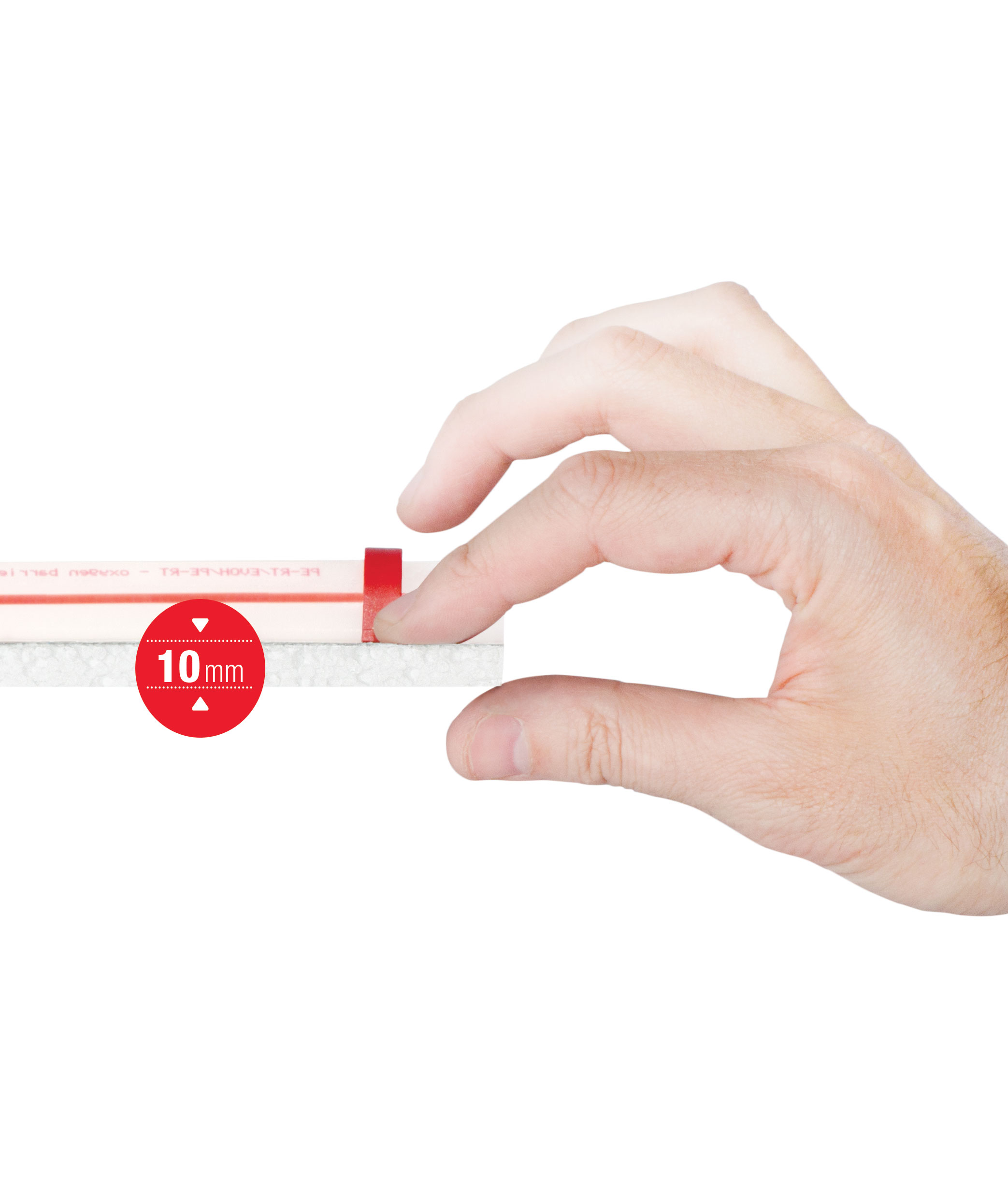 Europlus-ten is the radiant floor heating and cooling system that can be laid on a 10 mm EPS slab. The patented clip attachment system ensures the pipe remains firmly anchored to the insulation. Thanks to the self-bonding adhesive backing, it is possible to attach the EPS slab to the floor slab without it becoming detached, or ensure it adheres perfectly to other types of underlying insulation such as EPS, XPS, fiberglass.