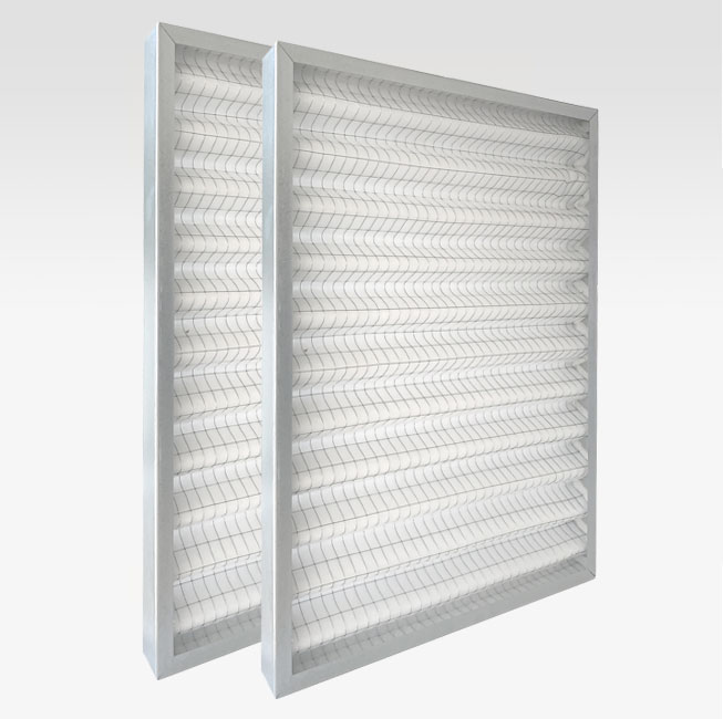 Ogni filtro è composto da un telaio esterno in acciaio zincato dove ha sede il setto filtrante costituito da un materassino ondulato sintetico con capacità filtrante ISO coarse 60% garantendo il filtraggio di particolato con dimensioni maggiori a 10 μm.